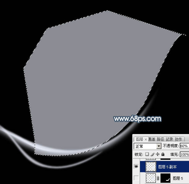7、新建一个图层,用钢笔勾出下图所示的选区,填充淡蓝色,不透明度改为:60%,如下图。