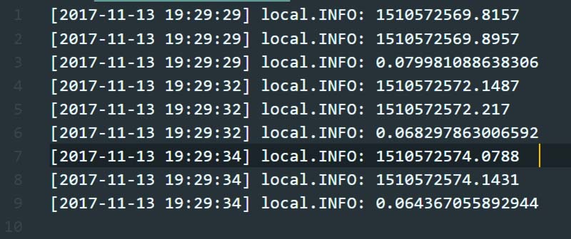 看看下面的日志截图,三次平均耗时在 0.07 秒左右,和前面的 16 秒相比,差了 200 多倍。