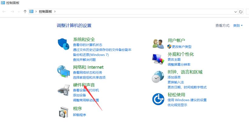 鼠标左键单击控制面板-鼠标左键单击硬件和声音。