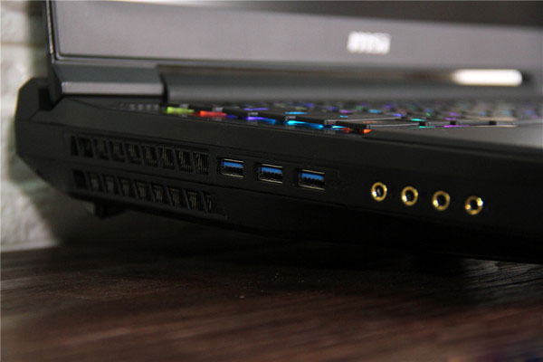 而在接口方面,这款笔记本也同样是毫不含糊,十分全面——在左侧,它搭载了三个USB 3.0接口和四个多媒体接口(分别是两个外接音箱接口和麦克风接口、耳机接口)。