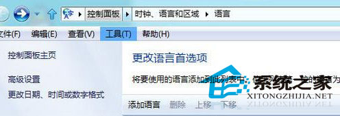 5、点击更改语言首选项,会打开控制面板的语言栏选项。