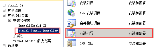 首先,我们通过“文件---新建---项目---其他项目类型---安装与部署---Visual Studio Installer”新建一个“安装向导”工程。