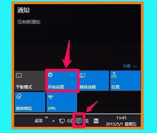 1、Windows10-10102版启用和调整讲述人功能的方法,左键点击系统桌面右下角的通知图标,在打开的通知窗口左键点击:所有设置;