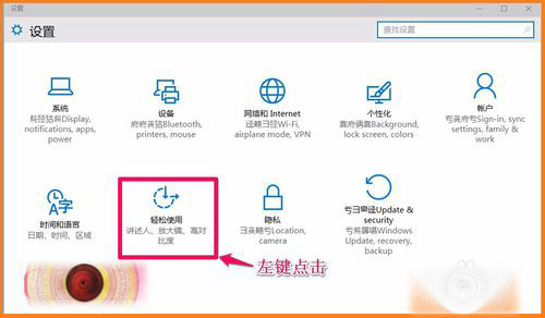 2、在打开的设置窗口,我们用鼠标左键点击:轻松使用;