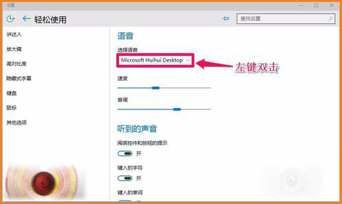5、我们再调整到语音,在选择语音框中左键双击:Micrososft Huihui Desktop;