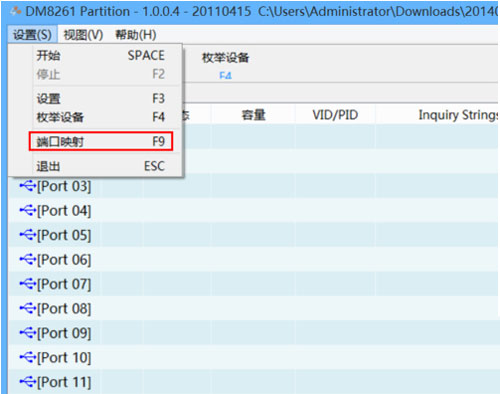 3、选择映射端口是为了识别u盘,如果工具能自动识别也就不需要选了,其他工具可能是刷新端口之类。