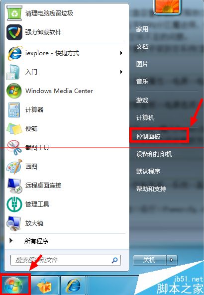 1、点击桌面左下角的开始接着点击右侧栏的控制面板