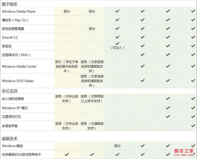 Windows7各版本上网功能区别