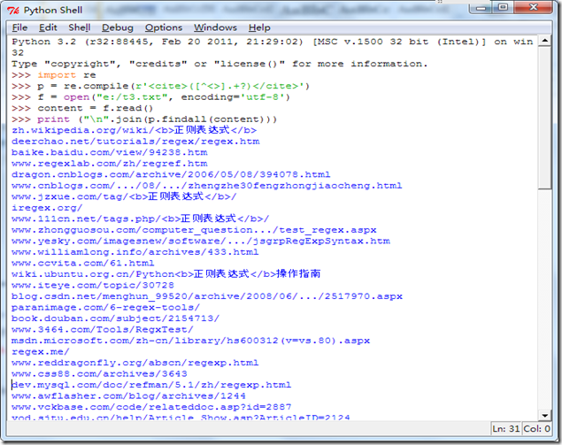 代码如下,先把搜索结果页面保持到e:/t3.txt中,在执行如下代码