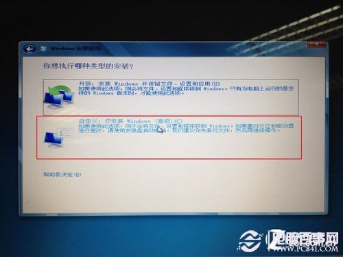 接下来我们会看到两个系统安装模式,第一是升级系统,第二是自定义安装。我们可以根据自身情况来选择安装,在这里我们要安装双系统,所以选择第二项自定义来继续安装流程。