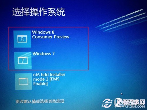 重启之后,我们会看到一个全新的启动管理器,这是 Windows 8 系统的一大改变,不同于以往字符风格的界面,图文并茂且能用鼠标来操作选择系统,可以说是一个全新的体验。
