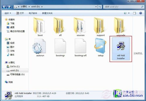 利用本地硬盘与利用 U 盘安装 Windows 8 操作系统的方法类似,在安装系统系统之前我们需要制作一个本地硬盘版本的系统安装盘。除了需要 Windows 8 系统 ISO 镜像文件以外,还将使用到 nt6 hdd installer 这个硬盘安装辅助工具。