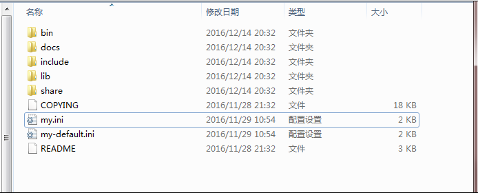 2.在解压路径下复制my-default.ini,修改名称为my.ini如下图所示