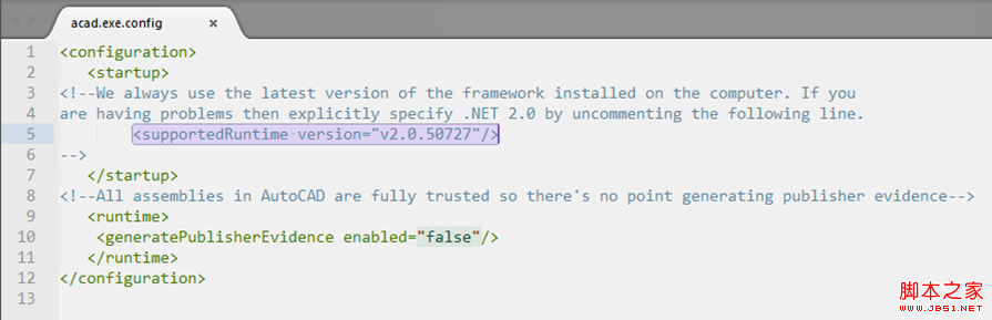 修改AutoCAD的配置文件,这个文件在AutoCAD的安装目录下。打开配置文件(acad.exe.config)如下: