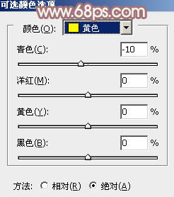 3、创建可选颜色调整图层,对黄,中性色进行调整,参数设置如图7,8,效果如图9。这一步把图片中的暖色稍微调淡。