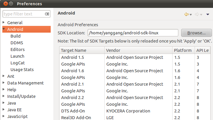 以上就是可爱学姐最近收集整理的关于Ubuntu搭建Eclipse+JDK+SDK的Android开发环境的全部内容,更多相关Ubuntu搭建Eclipse+JDK+SDK内容请搜索靠谱客的其他文章。
