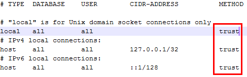找到/var/lib/pgsql/data/pg_hba.conf内容为: