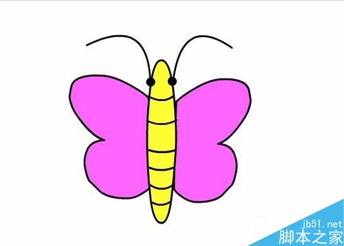 11、选择直线工具,给蝴蝶的肚子绘制花纹线,并调节其形状,卡通蝴蝶就制作完了,如图所示: