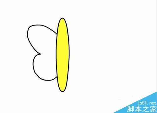 6、在翅膀的旁边绘制一个椭圆作为蝴蝶的身体,如图所示: