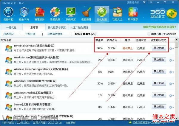 如果你是使用了360或金山安全卫士——功能大全——开机加速——系统关键服务的优化功能,见下图: