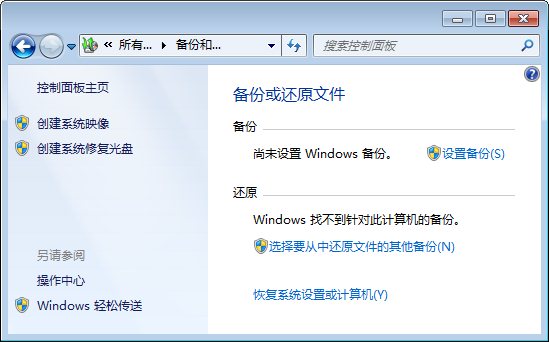 这是系统的默认设置状态,没有开启自动备份。上图中除了创建系统映像和系统修复盘外,右侧的备份一栏就是将要开启计划备份内容。