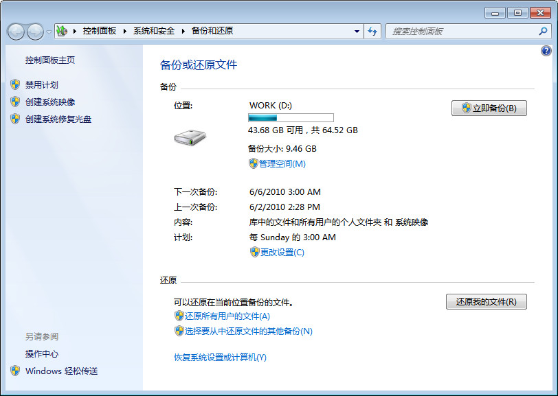 如果你不喜欢该自动备份计划,还可以随时停止或删除掉,不过如果你直接删除上述文件夹,可能无法删除,因为MediaID.bin处于占用状态,可以尝试以下方法。1、停止自动备份在上文的备份和还原的左侧有个禁用计划,可以临时停止计划,只是临时停止, 你还可以随时启用。