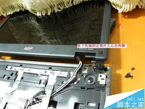 7、取下屏幕左右转轴两颗螺丝