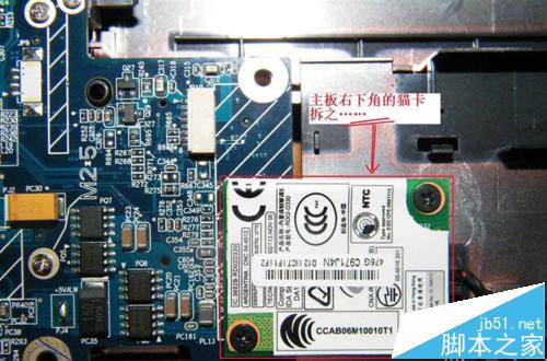 8、笔记本主板下面的猫卡螺钉去掉,然后取下猫卡