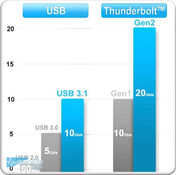但好景不长,2013年Intel把Thunderbolt接口的两股数据流拧成一股,达到20Gbit/s的传输速率,USB-IF看着你速度都已是我4倍,深感不能忍。当年7月,USB组织公开USB 3.1标准。按照通常的逻辑,USB 3.1就是USB 3.0的升级,但在今天讨论USB 3.1是不是比USB 3.0更快,或是存在什么其他的进步却是一个不成立的话题,因为USB 3.0已经不存在于USB-IF的定义里了。留下的现行标准里,除了代表2.0标准的Hi-Speed USB外,只有SuperSpeed USB和SuperSpeed USB 10Gbps。