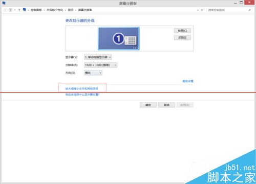 1、首先,桌面右键,屏幕分辨率,选择“放大或缩小文本和其他项目”