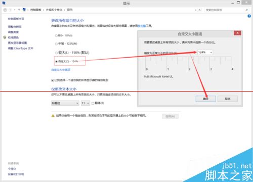 2、勾选图中,让我选择一个……,之后选择“自定义大小选项”,在弹出的对话框中填写数值“124”之后点击确定按钮。