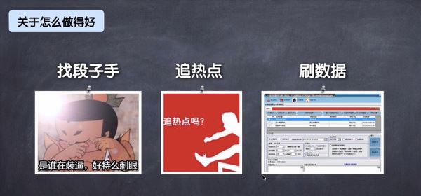 【误区一:找段子手】 段子手看似现在很红火,其实最红火的时间应该是在2015年,2016年段子手这个行业的生意已经没那么好了,但是现在还有很多人去找段子手,认为段子手的影响力很大,去写一个漫画或者是一个有意思的东西,然后投放到市场,让一些微博大V去转发,认为这个就是营销的成功。但是所转发的数据和你的业务转化有关系吗?带来了真正的转化了吗?