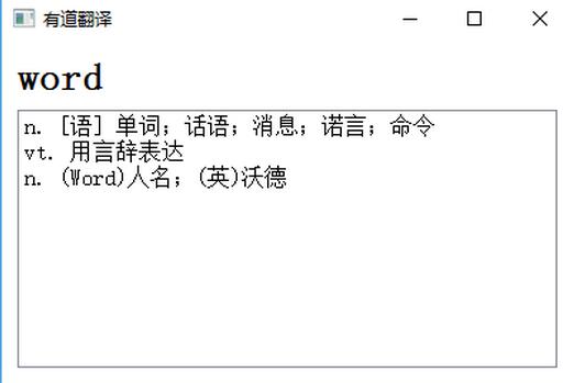 最后显示是通过Qt编写的界面,原本是想查询到单词后,界面窗口自动激活并移动到最前端,但Windows不允许未经用户操作而将窗口移动到最前端,所以最后只是通过激活窗口提示用户。