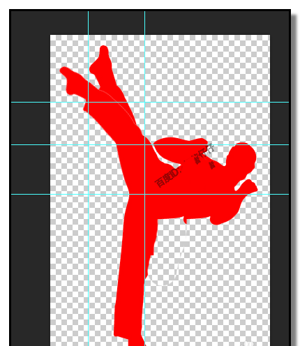 3、最后,在上方这只脚的脚尖钉一口钉。在做接下来的操作前,我们调出参考线,划出小腿踢腿每踢一个动作的范围。