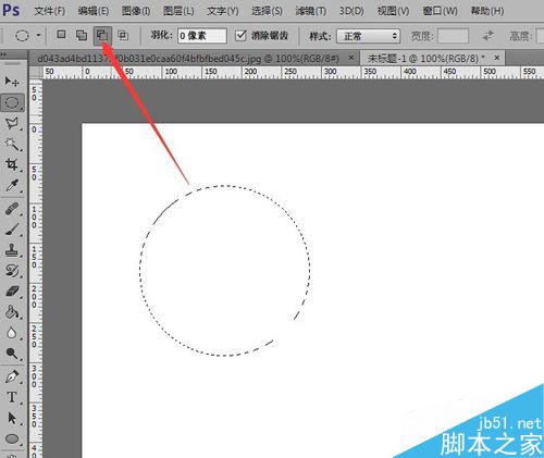 3、再把椭圆选框工具的属性——从选区中减去勾选。