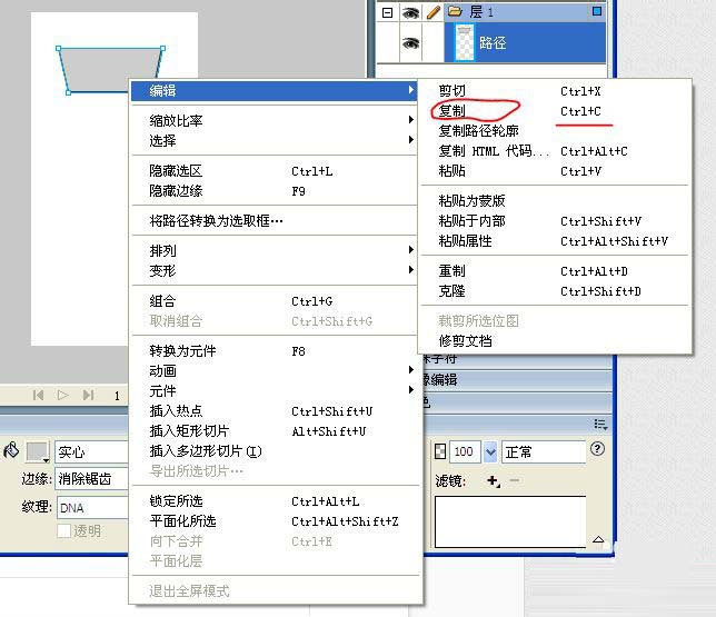 6、选择矩形,按右键“编辑”----“复制”