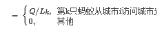 其中,Δτkij表示第k只蚂蚁在城市i与城市j连接路径上释放的信息素浓度;Δτij表示所有蚂蚁在城市i与城市j连接路径上释放的信息素浓度之和。