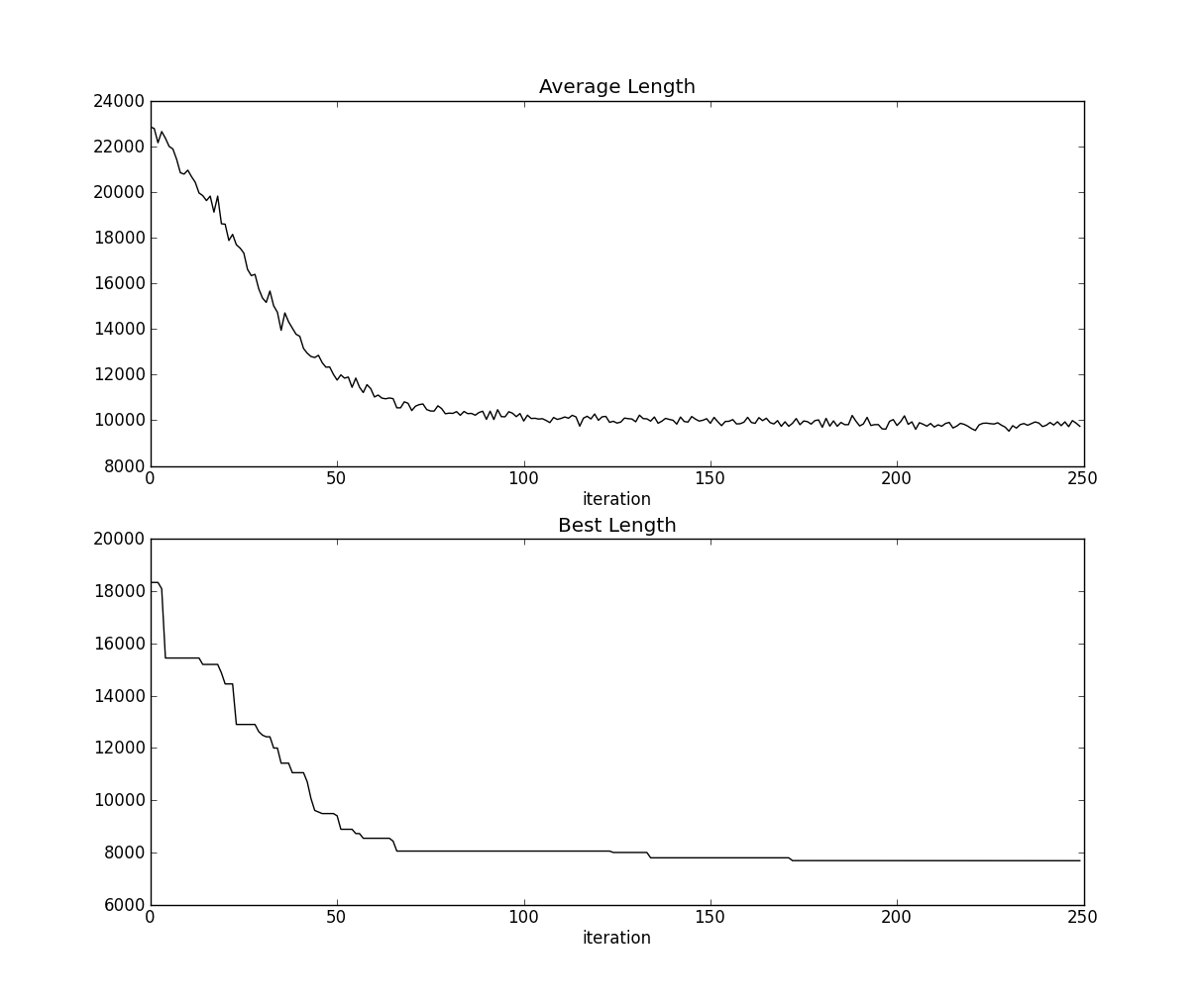lengthbest = np.zeros(itermax) #各代及其之前遇到的最佳路径长度