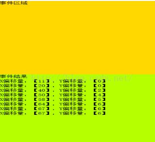 document.getElementById("result").innerHTML += "X偏移量:【" + e.deltaX + "】,Y偏移量:【" + e.deltaY + "】<br />";
