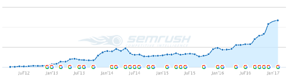 有图有真相,下面是2012年7月开设博客到2017年1月的流量增长截图。