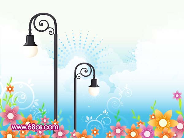 16、打开下图所示的路灯素材,抠出来拖进来,放好位置,如图22。