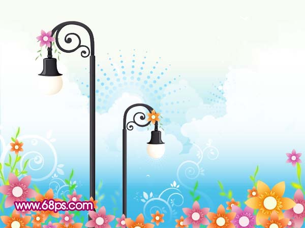 <图22> 17、再给路灯装饰一些树叶和花朵如图23。
