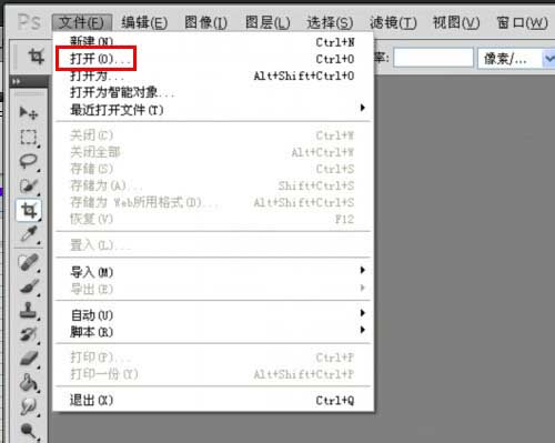1、首先打开ps软件,点击顶部主菜单中的文件菜单,在弹出来的菜单中,选择“打开”。(如下图)