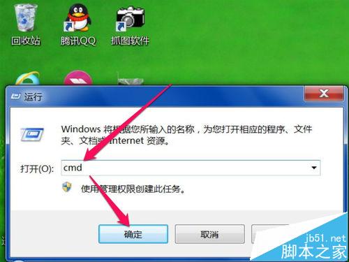 第一个方法用命令提示符方法,先从开始菜单中打开“运行”程序,然后输入cmd命令,确定。