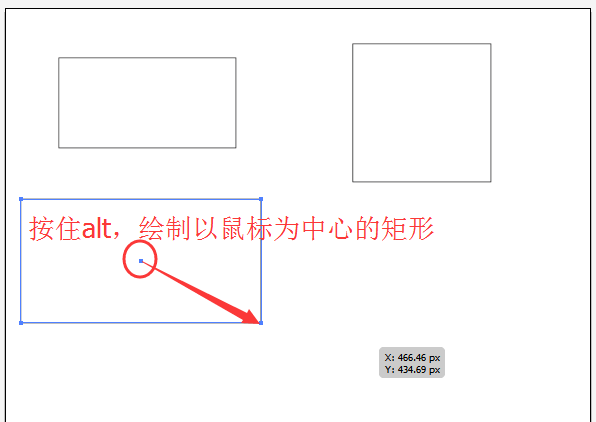4、按住alt不放,按住鼠标左键,拖动鼠标,可以绘制以鼠标为中心的任意大小的长方形。