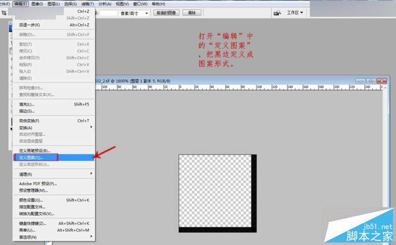 11.打开“编辑”中的“定义图案”,把黑边定义成图案形式。