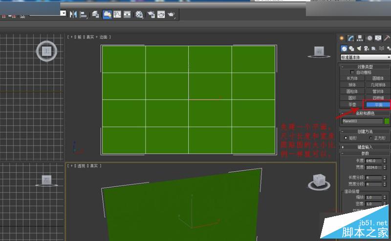 19.先建一个平面,尺寸长度和宽度跟贴图的大小比例一样就可以。