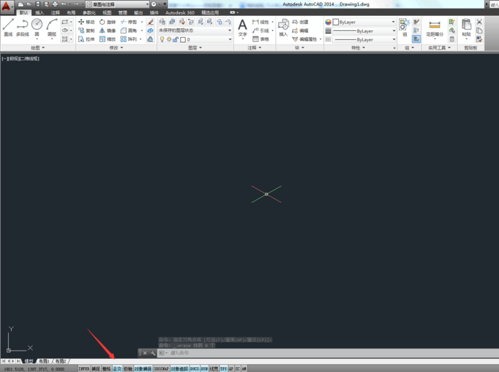2、这时你就发现你的光标变成了彩色斜交叉的状态,此时你的绘图操作就变成了不同的视角状态,按F5可以切换左视,右视,俯视等状态