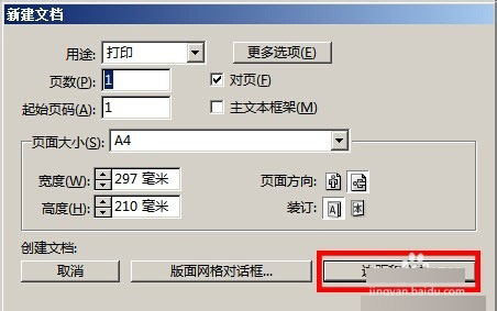 执行 文件——新建——文档命令,或按ctrl+n组合键,在“新建文档”对话框中的“页面大小”列表框中选择A4纸张命令,设置“页数”为1,页面方向为横向。