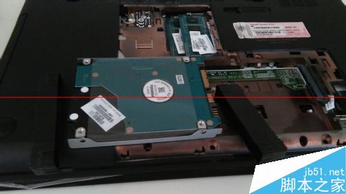 3、拆开后盖,取出原来机械硬盘;把硬盘支架去掉,装到固态硬盘上;把固态硬盘装回;扭去光驱固定螺丝,取出光驱。